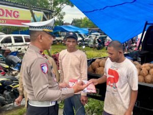 Pasar merupakan pusat aktivitas masyarakat. Dengan hadir langsung di sini, kami berharap pesan keselamatan berlalu lintas dapat diterima dan diterapkan dalam kehidupan sehari-hari,” Ujarnya.